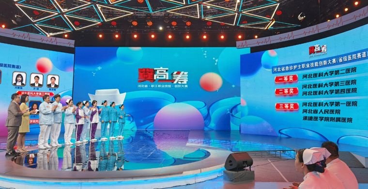 4月12日,《“冀”高一籌》河北省急診護士職業技能創新大賽(省級醫院賽道)舉行,經過層層角逐、激烈比拼,由本部急診科錢勇、東院急診科張健和韓彥敏組成的我院代表隊,最終獲得團體二等獎的好成績,三位選手分獲個人銅獎。本次大賽由河北省總工會、河北省衛生健康委員會主辦,河北省護理學會、河北廣播電視臺承辦,河北衛視、河北廣播電視臺冀時客戶端、冀工之家網上平臺同步播出。
