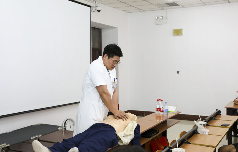 在日常必備急救技能的實操培訓環節,張寧主管護師結合同學們日常生活中可能遇到的急救場景進行假設,分別對猝死、氣管異物、觸電、溺水等危急事件的處理進行了詳細說明,并重點講解了心肺復蘇術以及海姆立克急救法,通俗易懂的語言和操作熟練的技能,將現場氣氛推向高潮,同學們紛紛前來親身體驗,接受專家們的指導。大家表示,四院老師們講授內容豐富多彩,學習到了很多防癌抗癌的知識和理念,親身體驗了急救操作技能,受益良多。