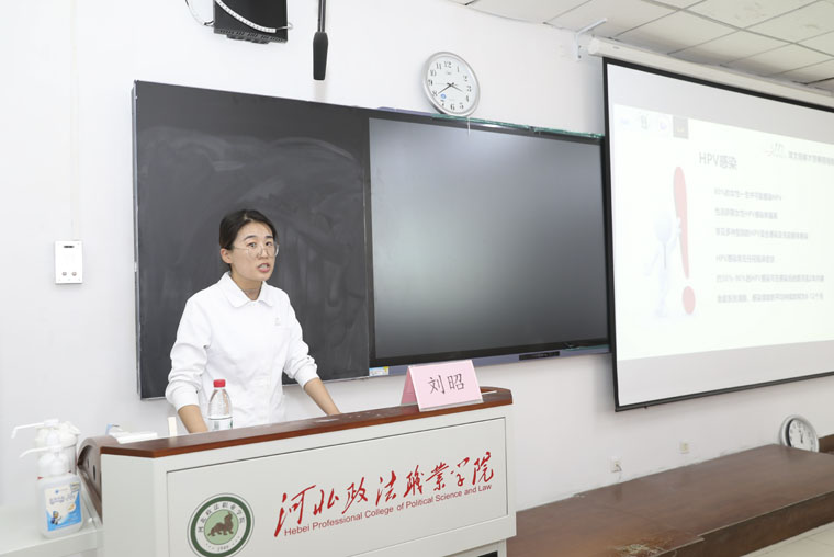 隨后,劉昭副護士長針對女性宮頸癌篩查與防治進行了科普宣講,涵蓋宮頸癌的三級防控體系、主要致病因素、HPV感染及疫苗接種、宮頸癌早篩等內容,鼓勵女同學根據個體情況盡早接種HPV疫苗,增強防癌意識,遠離宮頸癌。