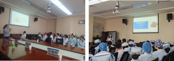 培訓會上,我院乳腺中心李賽男醫師對胸壁輸液港的植入及取出流程的難點、重點進行剖析。乳腺中心劉磊護士針對輸液港維護流程進行規范化培訓。