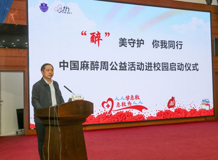河北醫科大學教務處長張敏教授代表學校在致辭中表示,學校始終堅持以習近平新時代中國特色社會主義思想為指導,探索形成了具有醫大特色的“三全育人”新模式。麻醉系和四院教務處努力貫徹執行,將“三個老師”協同育人工作落到實處。系列活動的舉辦,必將起到提高麻醉學醫學生的職業認同感和使命感,提升麻醉人才培養源動力,弘揚麻醉學科正能量的作用。