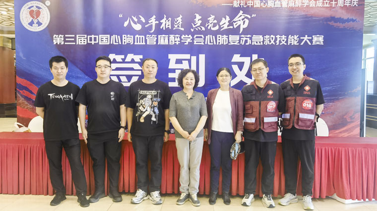 本次比賽在全國范圍內展開,由中國心胸血管麻醉學會心肺復蘇委員會在各省的辦事處組織本省隊伍參賽。河北省辦事處設在我院,麻醉科組織省級醫療隊和志愿者隊伍參賽。省級醫療隊領隊為王合梅副主任,隊員為吳振主治醫師、程琛主管護師;在保衛處的支持下,志愿者隊伍由我院保衛處李昂、宋巖、陳奕霖組成,李昂為領隊。大家積極努力、刻苦訓練,在預選賽的全國160多支參賽隊伍中脫穎而出。經過決賽中激烈的角逐,我院代表的省級醫療隊獲團體一等獎、志愿者隊伍獲團體三等獎,吳振獲個人一等獎,程琛、宋巖、陳奕霖分獲個人二等獎。