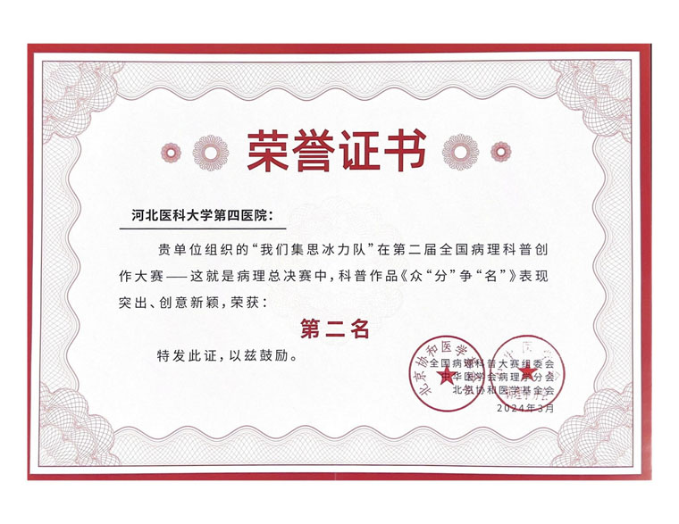 期間,全國第二屆病理科普創作大賽“這就是病理”決賽舉行,我院病理科派出的兩支參賽隊,從來自全國病理屆科普精英的232份預賽作品中脫穎而出,憑借扎實的專業知識和頗具感染力的表演,展現了病理學的獨特魅力,在全國總決賽分別獲得全國第二名和第八名的好成績,這也展示出我院病理科作為河北省科技廳腫瘤診斷科普示范基地的掛靠單位,具備較強的科普人才培養能力。