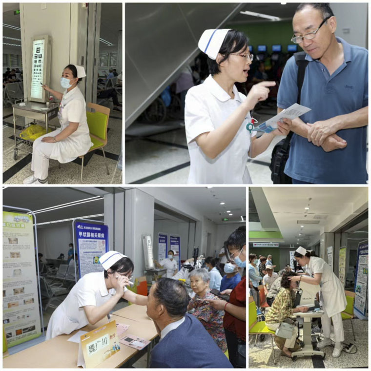 6月6日,在郝玉華主任、呂蘇梅護士長的帶領下,眼科團隊攜裂隙燈、眼壓計、視力表等檢查設備在本部門診一樓大廳開展“全國愛眼日”義診活動,服務患者300余人次。
