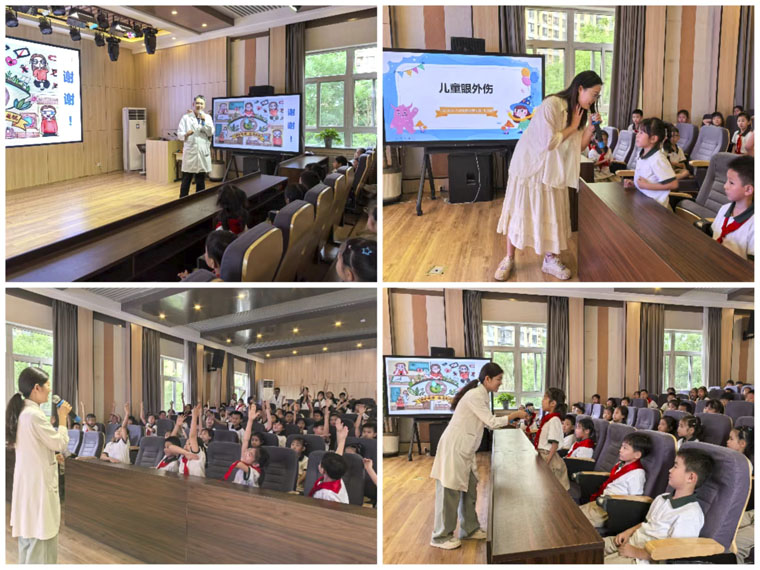 6月4日,眼科張希奎主治醫師、楊麗曼主管護師和樊思雨護士組成專家團隊走進石家莊實驗小學,通過觀看“科普電影”、宣講如何預防近視、如何處理眼外傷等,繪聲繪色地傳遞了用眼愛眼的科普知識,倡導學生們和老師要及時關注眼健康。孩子們踴躍地同醫護團隊進行提問互動,現場氛圍輕松愉悅。此外,科室于醫院官方微信公眾號推送了糖尿病視網膜病變的科普知識,對相關疑問給予了專業解答。