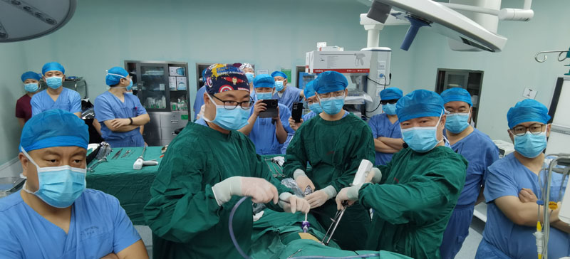 同時,田子強副院長還與復旦大學附屬中山醫院、遼寧省腫瘤醫院的胸外科專家共同進行多臺肺癌手術的現場直播演示。他主刀了“胸腔鏡左肺下葉后基底段切除術”,并與現場專家深入交流經驗,大家紛紛表示受益匪淺,這為今后此類手術的開展及推廣提供了重要的指導作用。