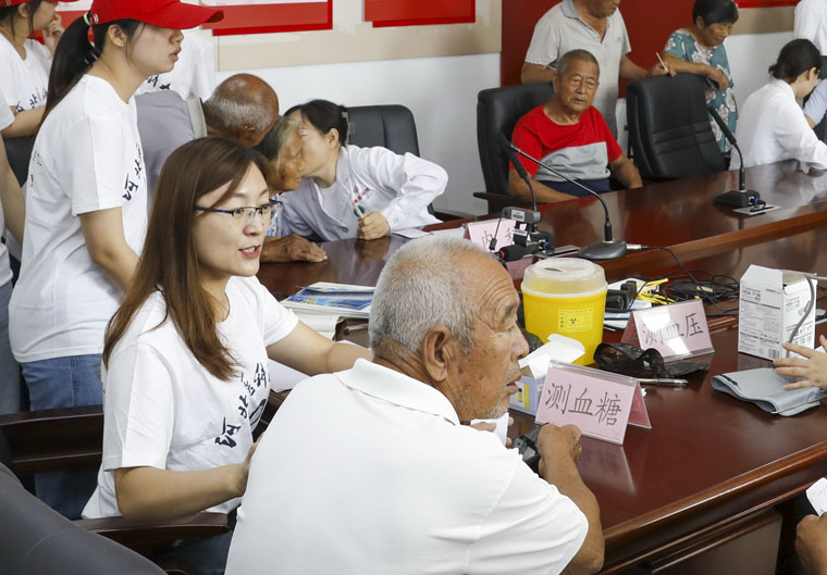 當日清晨,服務團迎著朝霞,踏上了這次富有意義的實踐之旅。到達北莊村后,大家迅速進入工作狀態,細致入微地為村民們檢查身體,詳細詢問病史,并針對性給出治療建議。團干部和學生志愿者們積極參與其中,協助進行測量血壓、血糖,發放藥品,并用通俗易懂的語言向村民們普及常見疾病的預防和治療知識。本次義診共服務當地群眾100余人次,得到一致稱贊。