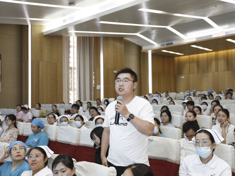 王欣然教授擁有豐富的臨床經驗和扎實的科研背景,她圍繞《臨床護士如何進行科研選題及設計》這一題目,通過生動的案例對臨床護理科研選題基本原則、步驟、設計方法進行了深入淺出的講解。吳彥爍主管護師分享了關于文獻檢索與管理的經驗,作為重癥醫學科護理科研小組組長,她結合自身實踐經驗,介紹了高效檢索文獻的方法及文獻管理工具的使用。現場交流中,兩位講者對與會護理人員代表在科研中的困惑進行了解答。大家紛紛表示,此次講座貼近臨床、思路清晰,對今后的護理科研選題和設計帶來較大的啟發和幫助。