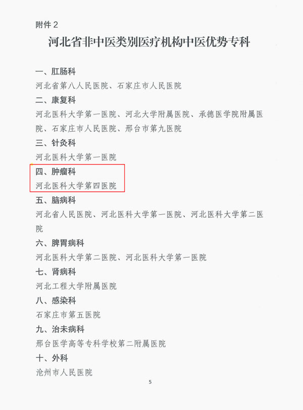 近日,河北省中醫藥管理局、河北省衛生健康委發布了《關于命名河北省中醫優勢專科和確定省級中醫優勢專科建設單位的通知》,旨在加快推進全省中醫優勢專科集群建設。經過同行評議、專家函審、層層審批,我院中醫科以腫瘤專業方向確定為河北省非中醫類別醫療機構中醫優勢專科,這標志著我院中醫科腫瘤方向在全省優勢專科領域達到了領先水平。