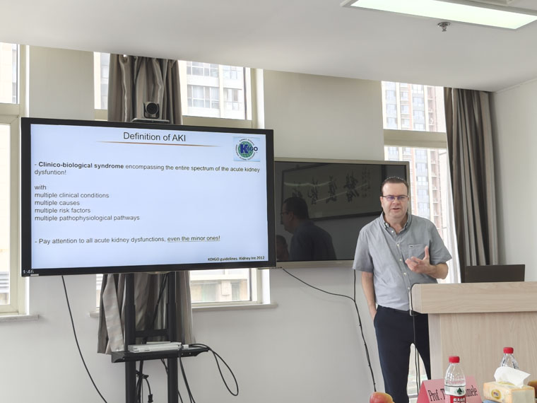 在場醫護人員受益匪淺,踴躍發言,提出有關重癥醫學、急性腎損傷流行病學學術研究方面的問題和疑惑,托馬斯·里梅萊教授憑借豐富的經驗,耐心提供建議和指導。我院重癥醫學科張汪醫師現場進行病例匯報,托馬斯·里梅萊教授對我院醫務人員的處置能力表示肯定,雙方就此病例展開細致交流。