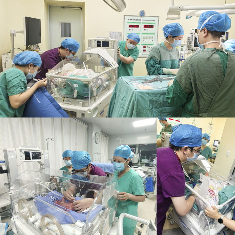 產婦既往有晚期流產史,現無子女,本人及其家屬對此次成功妊娠非常期待。經與對方充分溝通,東院產科決定行緊急剖宮產娩出胎兒。凌晨3時,麻醉科、兒科做好應急準備,產科團隊專注手術操作,東院兒科病區主任沈穎和賀世超醫生做好新生兒急救準備,麻醉科邱東潔和康金夢醫生確保產婦安全并準備新生兒氣管插管,手術室齊乘客、柴金龍護士確保手術器械齊全,經多學科團隊不懈努力,手術順利結束,體重僅1120g的極早產兒平安降生。