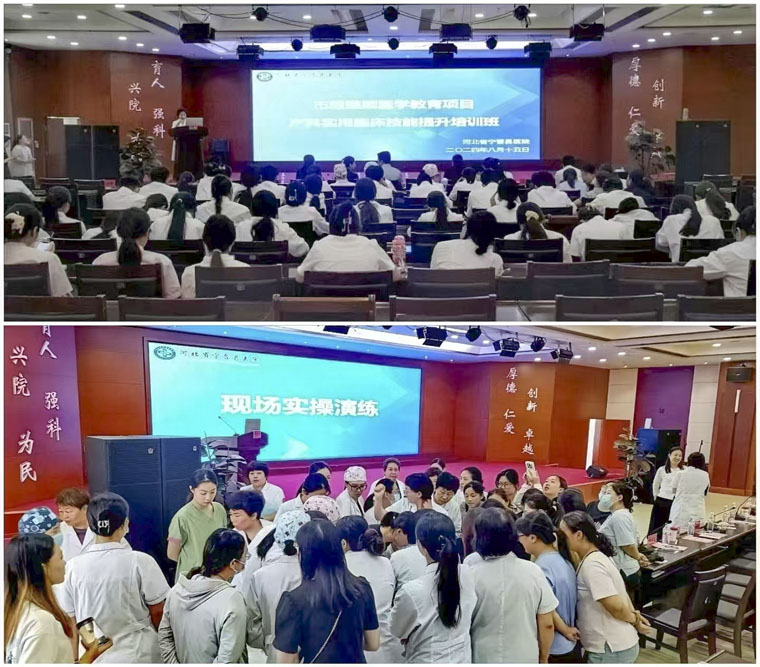 近日,東院產科楊志芬副主任及團隊應邀前往寧晉縣,以理論授課聯合實操演練的形式開展了一場深入的產科臨床技能培訓。作為東院產科“適宜技術推廣”的第四站,此次培訓專注于提高當地醫務人員處理嚴重產后出血、預防DIC和會陰裂傷縫合等關鍵技能。寧晉縣各醫療單位百余名產科骨干醫護人員參加培訓。寧晉縣醫院院長溫志謙在開幕式上致辭,產科主任張麗霞主持活動。