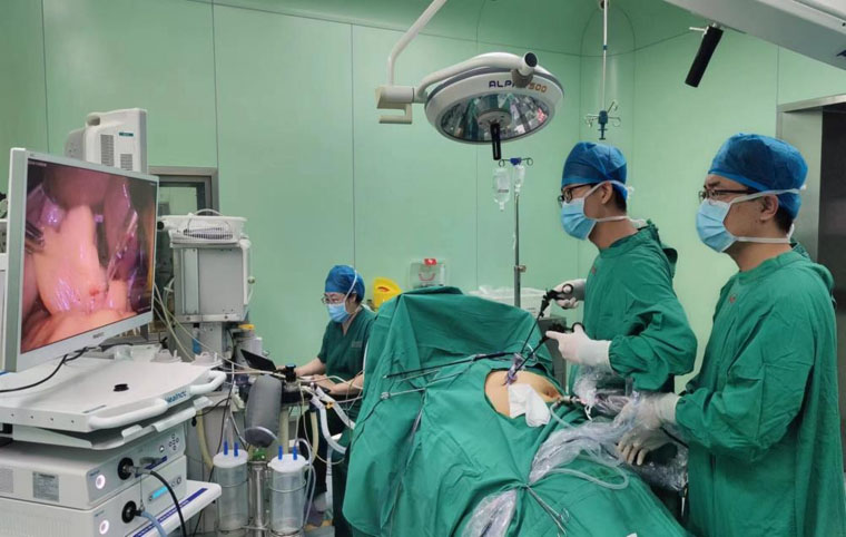 雄縣醫院普外一科為該院的重點科室,為進一步規范診療流程,白建國醫生充分利用查房時間,與科主任開展現場示教問診、為患者查體、解讀輔助檢查等,幫助科室團隊優化診療流程。由于膽道解剖變異較多,手術存在一定的風險和難度,為更好地提高科室整體手術水平,白建國制定了“手術演示-臺上指導-臺下指導-術后復盤”的計劃,通過多次的演示與指導,手把手將四院的外科經驗傳授給醫院同仁,尤其幫助許多年輕醫生培養了良好的手術思路及技巧。