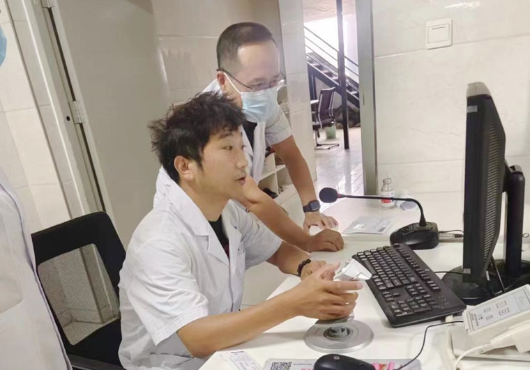 雄縣醫院急診科為縣120院前急救主要單位,同時還是胸痛中心、卒中中心,承擔了縣域大部分院前急救任務。因此,多數病人情況較復雜且嚴重,由于當地在常規診療流程及有創操作方面還有待提高,程子安醫生通過講課、實操等方法,幫助急診科的大夫進一步掌握常見病種的搶救流程及診療規范,并指導大家進行了胸腹腔穿刺置管、心包積液穿刺置管、深靜脈穿刺置管等一系列有創操作,為提高該院急危重癥的救治水平做出了有益指導。在特殊時期,他還通過醫院直播平臺與當地群眾分享了暴雨汛期如何做好傳染性疾病防治方面的知識,盡己所能保障人民群眾的生命健康。