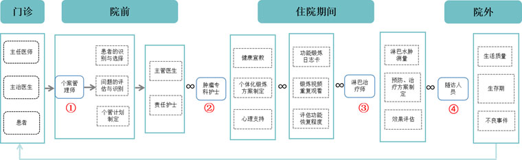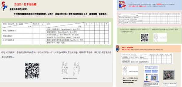 患者出院后,乳腺中心的院外延續護理服務不僅關注患者的身體康復,更著眼于全方位的長期健康管理。為更好地支持乳腺癌患者在院外的康復過程,乳腺中心提出了一系列創新的觀點和舉措。患者出院時,采用卡通闖關模式,設計個體化患肢功能鍛煉日志卡,起到時時提醒監督作用,保證鍛煉質量。日志卡將鍛煉內容進行量化,方便患者掌握鍛煉的強度,及時明確患肢功能恢復情況。個案管理師在患者出院后1周內、1月、3月、半年、1年進行定期隨訪,分析評估患者階段性達標狀況,切實解決實際困難。個案管理師管案1年后予以結案,將患者轉介至乳腺中心隨訪室,由專業隨訪人員進行定期隨訪,最終實現患者全程、全方位管理。