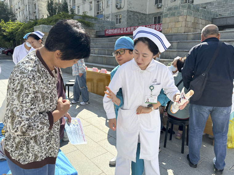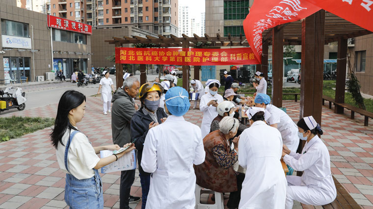 今年9月為2024中國整合腫瘤學大會(CCHIO)腫瘤防治全域科普行動月,9月23日,在中國抗癌協會、河北省抗癌協會以及中華護理學會的組織下,我院護理部積極響應,聯合多科室30余名護理專家分別在長安區、高新區的基層社區開展科普宣教和義診咨詢活動,共服務群眾近200人次,免費檢測血壓、血糖80余人次。