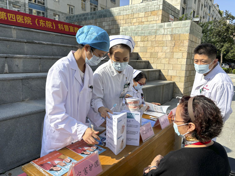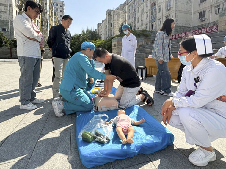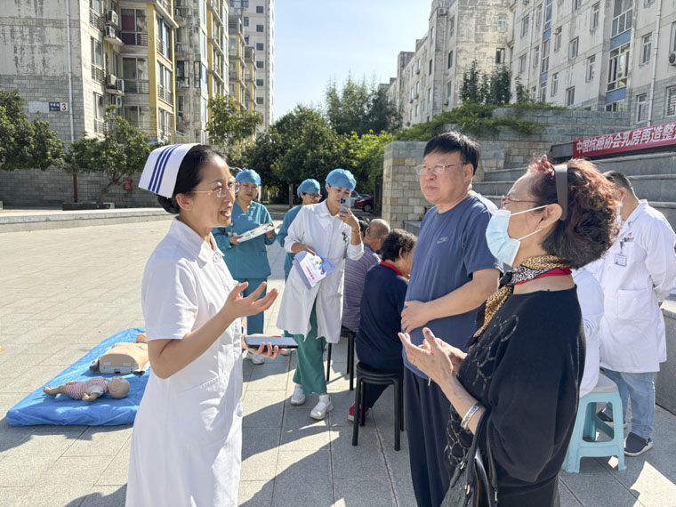 乳腺中心護理團隊為女性居民講解了乳腺疾病篩查方法,胃腸外科、呼吸內科和泌尿外科的專家分享了通過健康飲食和良好生活習慣預防相關疾病的妙招,急診科醫護人員現場演示了心肺復蘇、自動體外除顫儀(AED)的使用以及對成人、嬰兒的海姆立克操作,口腔科醫生講解了如何進行口腔健康管理,指導居民通過正確的刷牙和護理方法預防牙齦炎、齲齒等口腔問題。醫務人員同期開展了心血管疾病預防和糖尿病管理的講解,積極推廣了安寧療護的理念,向居民普及如何在疾病晚期得到高質量照護,減輕病患痛苦。