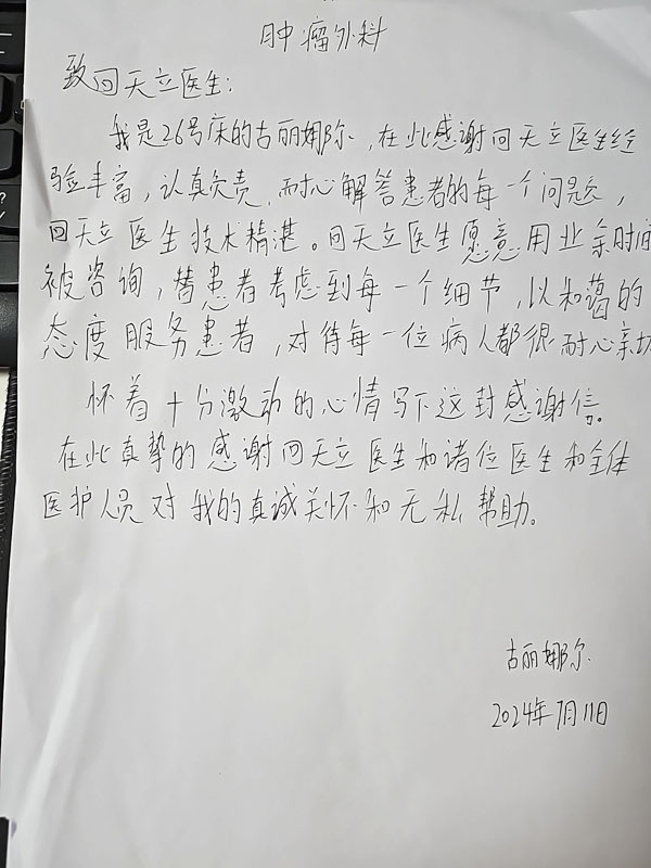 手術的成功,讓患者及家屬深切感受到醫者仁心的關懷與醫學技術進步帶來的福祉,她們向回天立副主任醫師贈送錦旗表達感謝。