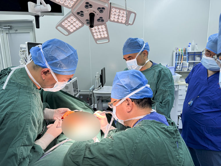 一名49歲的女性患者,患有左乳腺浸潤性導管癌cT4N1M0 IIIB期及腋窩淋巴結繼發性惡性腫瘤,并經歷了數月的新輔助化療。面對患者的嚴峻病情,回天立副主任醫師提出實施全麻下左乳癌改良根治術,并結合背闊肌肌皮瓣轉移及假體植入進行一期乳房重建的方案,患者及家屬表示認可。在回天立副主任醫師的帶領下,手術團隊歷經7個小時的精細操作,成功完成這一復雜手術。術后,患者重建的乳房形態自然,不僅滿足醫學治療的需求,更兼顧美學效果,為患者帶來了極大的心理慰藉,幫助其提升了生活質量。