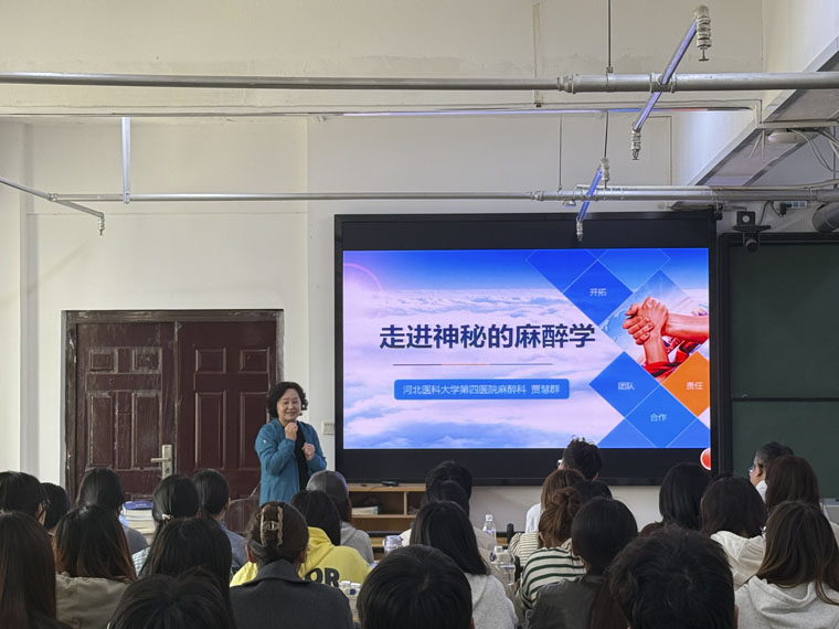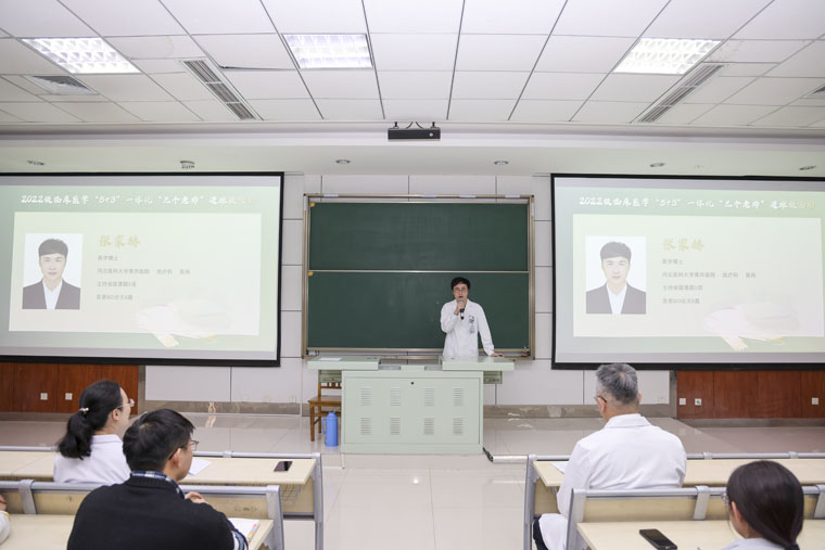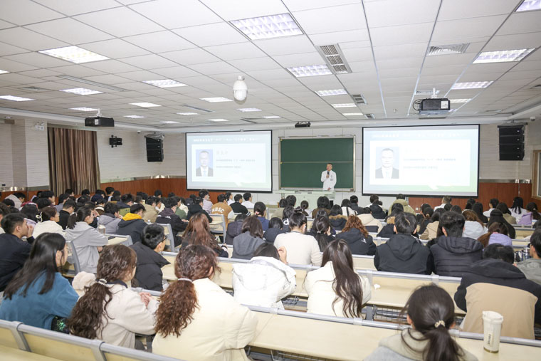 2022級麻醉學專業本科班學業導師、麻醉學系主任賈慧群教授向同學們介紹了麻醉學科的歷史和發展前景,讓大家對麻醉學科有了初步認識,對于在AI時代下如何深耕于麻醉專業提升個人崗位勝任力有了信心與方向。2022級臨床醫學“5+3”一體化班學業導師張風賓教授以《從課堂到臨床--醫學長跑的第一公里》為題與同學們分享醫學學習之路,對同學們如何找到日后的“醫學人設”、如何選擇臨床與科研給予了詳細指導。