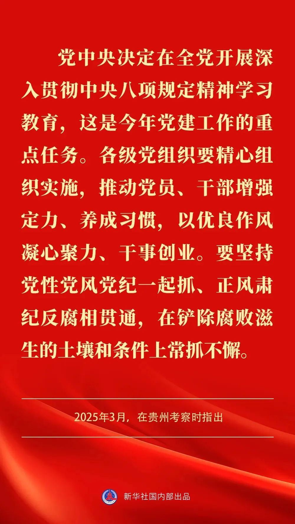 中央黨的建設工作領導小組近日召開會議指出,黨中央決定,自2025年全國兩會后至7月在全黨開展深入貫徹中央八項規定精神學習教育。