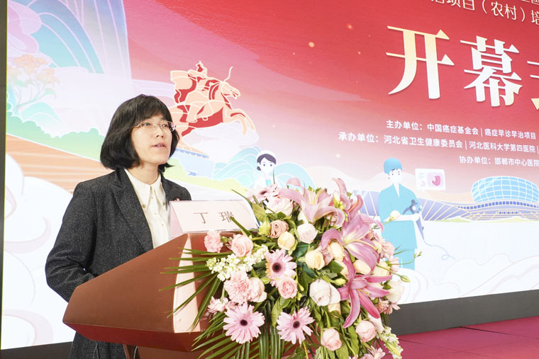 國家衛生健康委員會癌癥早診早治項目(農村)專家委員會秘書長魏文強、河北省衛生健康委醫療應急處處長丁瑞、我院黨委書記李立平 、邯鄲市人民政府三級調研員張建東、邯鄲市衛生健康委員會主任李小靜、邯鄲市中心醫院黨委書記武一平出席會議。會議特別邀請國家癌癥防治事業的引路人,中國醫學科學院腫瘤醫院原院長董志偉教授和我院王士杰教授蒞臨現場。省項目辦公室副主任、我院袁麗副主任醫師主持開幕式。