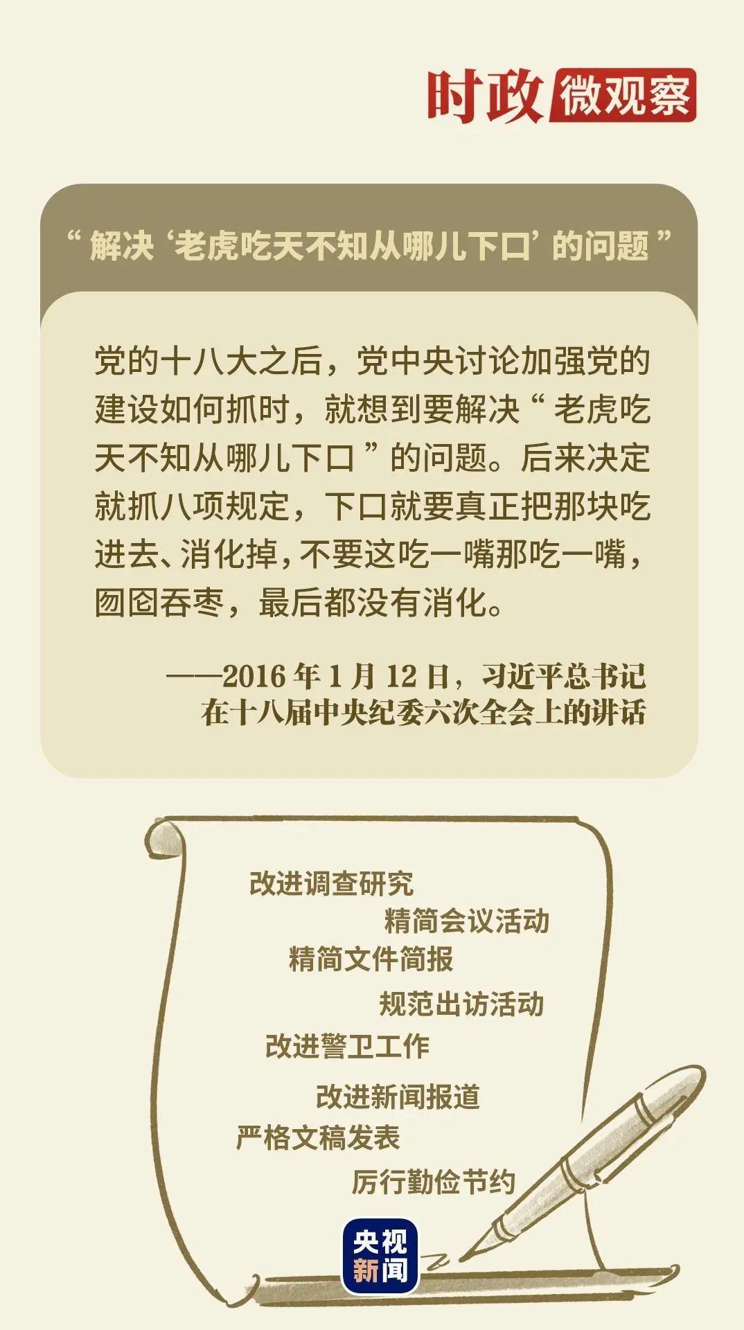 《時政微觀察》選取習近平總書記關于中央八項規定的生動論述,闡明其中深意。
