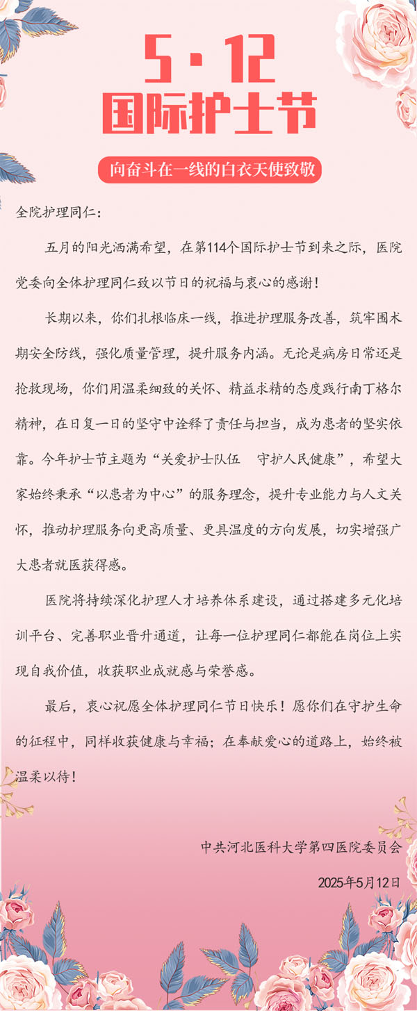 今年5月12日是第114個國際護士節,我院精心籌備策劃,開展了一系列豐富多彩活動,向每一位在護理崗位上默默耕耘、無私奉獻的白衣天使致以崇高的敬意和真摯的祝福,讓護理工作者們在屬于自己的節日里,收獲溫暖與感動,汲取奮進力量。