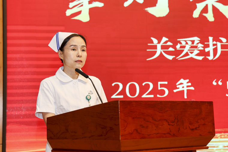 常務副院長何宏濤宣讀表彰決定,同時向在護理崗位上矢志不渝、辛勤付出的兄弟姐妹們送上節日問候,激勵全院職工以優秀護理人員為榜樣,凝心聚力、奮勇開拓。他充分肯定了2024年我院護理工作在臨床護理、教學培訓、專科基地建設、科研科普等多方面取得的優異成績。面對醫院高質量發展的新機遇與新挑戰,他對護理團隊提出五點期望:一是堅持護理文化傳承,以深厚的四院文化引領護理工作;二是深化護理服務內涵,持續提升護理質量與水平;三是加強護理人才培養,為護理學科發展注入強勁動力;四是借助信息化手段,提高護理工作效率與精準度;五是搶抓政策機遇,充分挖掘與提升護理服務價值。他號召全院護理同仁以更飽滿的熱情、更昂揚的斗志、更扎實的作風,護佑人民健康,推動醫院高質量發展邁向新臺階。