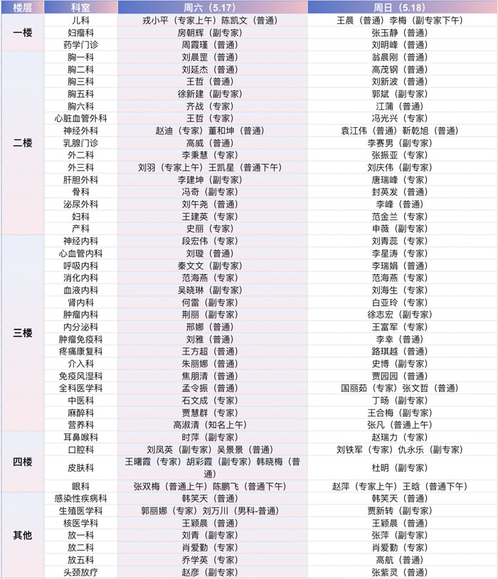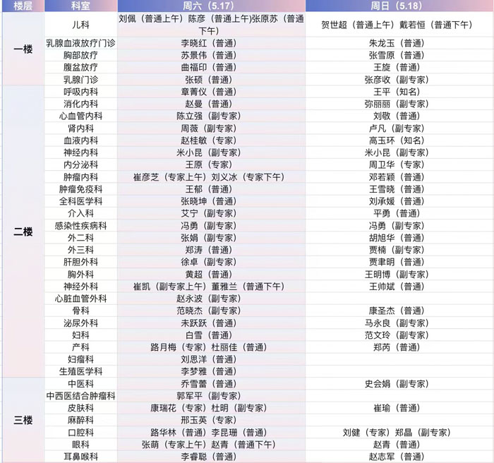 注:具體以實際出診為準。