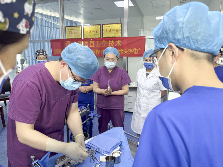 近日,在我院兒科主任刁玉巧教授的帶領下,張文浩主治醫師陳彥主治醫師王瑛瑋護士長等兒科專家團隊一行前往故城縣醫院新生兒科開展了河北省縣級綜合醫院適宜技術推廣項目——臍靜脈置管在危重新生兒搶救中的應用,旨在進一步提升基層醫院危重新生兒救治能力。