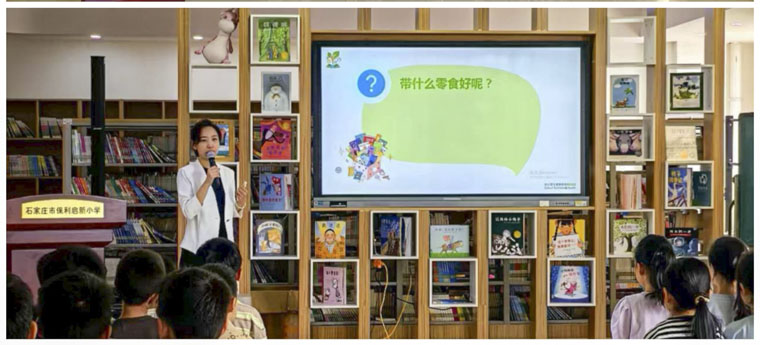 保利啟新小學的"小零食、大智慧"講座中,謝琪副主任醫師通過圖片對比展示高糖高脂零食的危害,教孩子們看食品標簽選擇健康零食,輕松活潑的授課方式讓孩子們全程興致盎然。