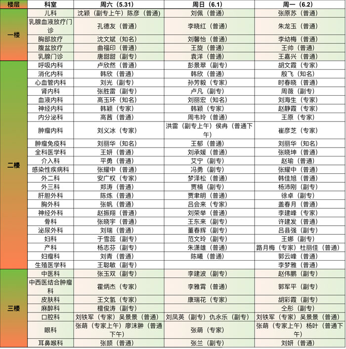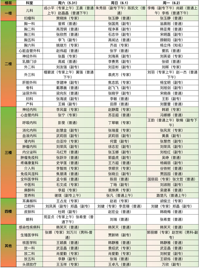 注:具體以實際出診為準。