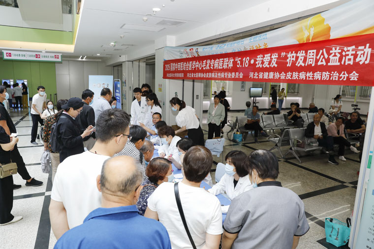 5月26日,我院皮膚科在本部門診大廳舉辦了毛發專病醫聯體 “518我愛發” 護發周公益活動及第十九屆 “525全國護膚日” 主題活動。今年“525全國護膚日” 的宣傳主題為“關愛銀齡肌膚,守護幸福時光” 。皮膚科主任張燕帶領醫護團隊,為前來咨詢的患者提供了專業、貼心的義診健康服務。