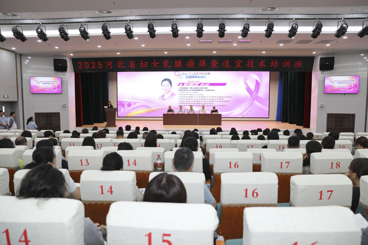 6月16-17日,由河北省衛生健康委婦幼處主辦、我院承辦的河北省2025年農村婦女乳腺癌檢查項目培訓班在我院舉行。河北省衛生健康委婦幼健康處處長李保紅,我院黨委書記李立平、副院長彭利以及河北省乳腺癌防控技術培訓基地負責人耿翠芝教授等出席。來自全省11個地級市及44個縣(市)婦幼保健院的近百名乳腺癌篩查與診治醫務人員參與培訓,旨在系統提升乳腺癌篩查與診療能力。