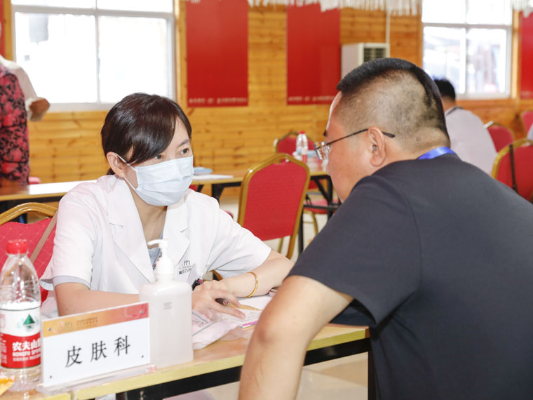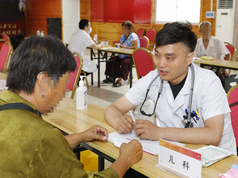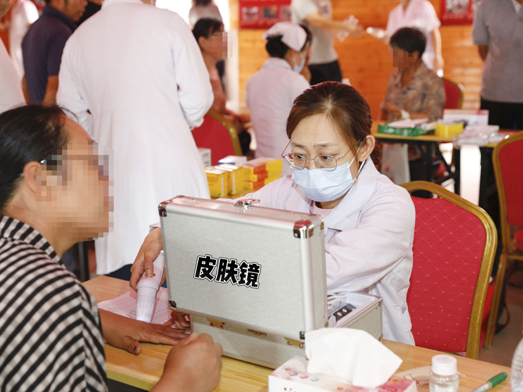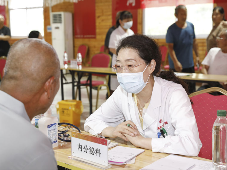 我院醫療服務團隊由內分泌科丁海霞主任醫師、腫瘤內科李穎副主任醫師、產科郭輝副主任醫師、生殖醫學科賈新轉副主任醫師、皮膚科胡彩霞副主任醫師和徐亞萍技師、兒科路曉飛主治醫師、眼科陳鵬飛主治醫師、骨科王英主管護師、肝膽外科房軍樂主管護師組成。大家耐心細致地詢問病情、進行查體診斷,給予鄉親們科學、專業的治療建議和方案,現場還贈送1000余盒常用藥,并為當地群眾測量血壓。除了集中義診,專家團隊對行動不便的村民主動上門服務,為當地百姓排憂解難,把健康真正送到群眾身邊。