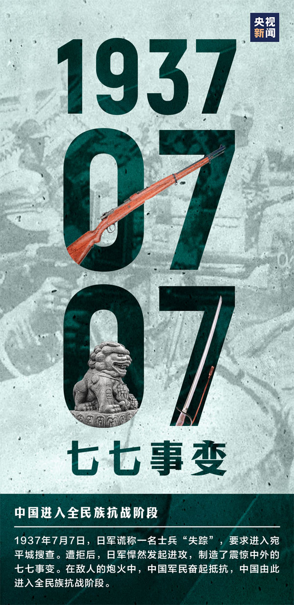今年是中國人民抗日戰爭暨世界反法西斯戰爭勝利80周年,今天是七七事變爆發88周年。在此節點,讓我們回望歷史,記住這些浸染血淚的日子。銘記!自強!