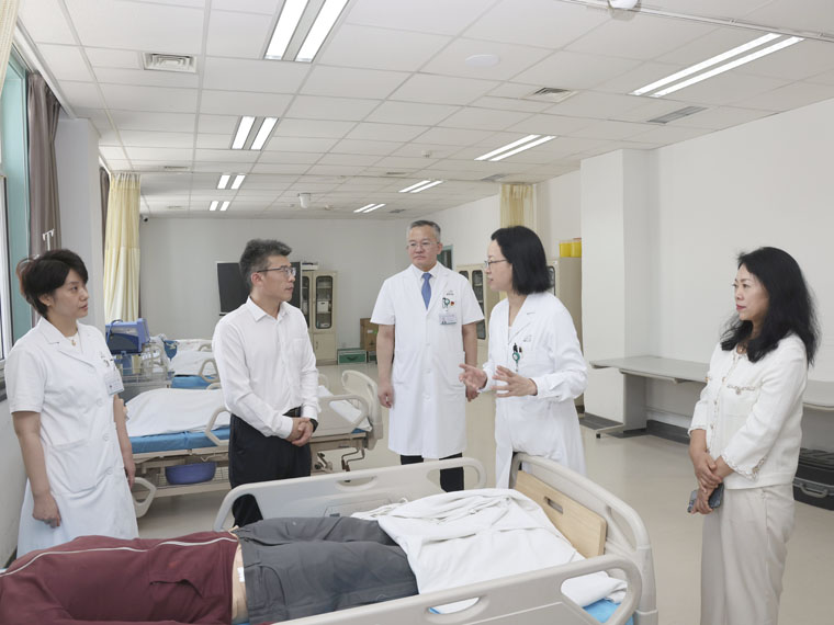 他強調,要進一步加強黨建引領,特別是結合深入貫徹中央八項規定精神學習教育、醫德醫風專項整治行動等,把黨的政治優勢轉化為推動醫療業務發展的強大動力,以高質量黨建推動醫院高質量發展。要進一步加強學校和醫院的融合發展,學校的人才培養、科學研究、社會服務、文化建設、國際化推進等,都要與醫院的醫療、教學、科研工作緊密融合,從而更高效地破解當前發展中存在的一些實際難題。要加強醫療服務、人才培養和科研創新等關乎長遠發展的核心領域建設,特別要對標國內第一方陣醫院,著力加強內涵建設,提升綜合實力,為推進國內一流特色鮮明醫科大學建設提供堅強支撐,為健康中國和健康河北建設貢獻力量。