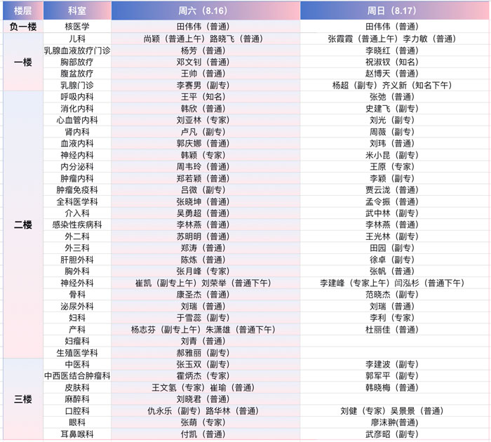 注:具體以實際出診為準。