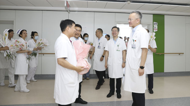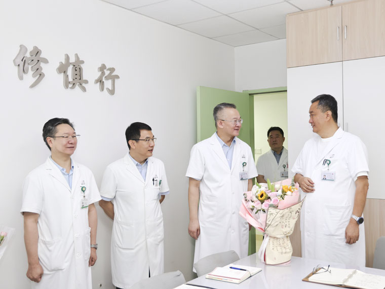 當日上午,全體院領導帶領相關職能部門負責人,分批次在兩院區親切慰問了仍然奮斗在一線的老專家、老教授和臨床醫技科室醫務工作者,為他們送上鮮花和掌聲,并致以節日的問候和誠摯的祝福。