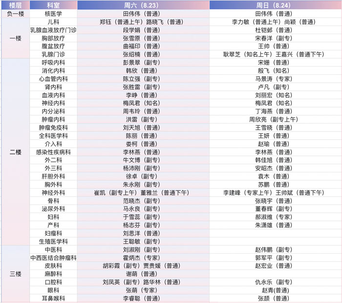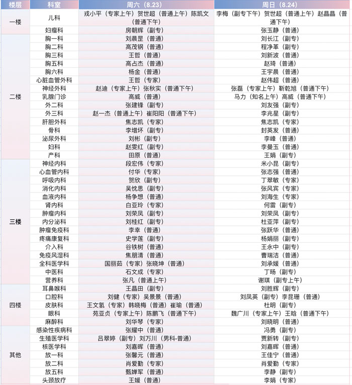 注:具體以實際出診為準。