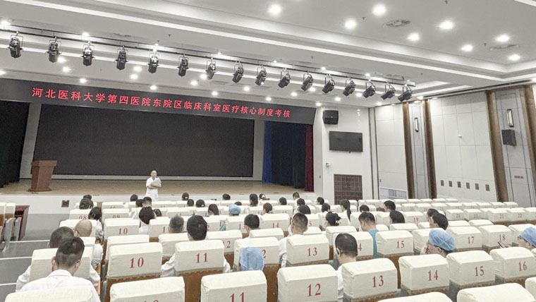 為強化依法執業精神,落實醫療核心制度,全面筑牢醫療質量安全基石,8月27-28日,東院區醫務處分兩批次在新醫療綜合樓報告廳組織開展了醫療核心制度專題培訓與考核。本次培訓通過質控醫師會議與科室宣講相結合的方式展開,系統講解醫療核心制度內容與臨床應用要求,40歲以下住院醫師及主治醫師150余人參加培訓。