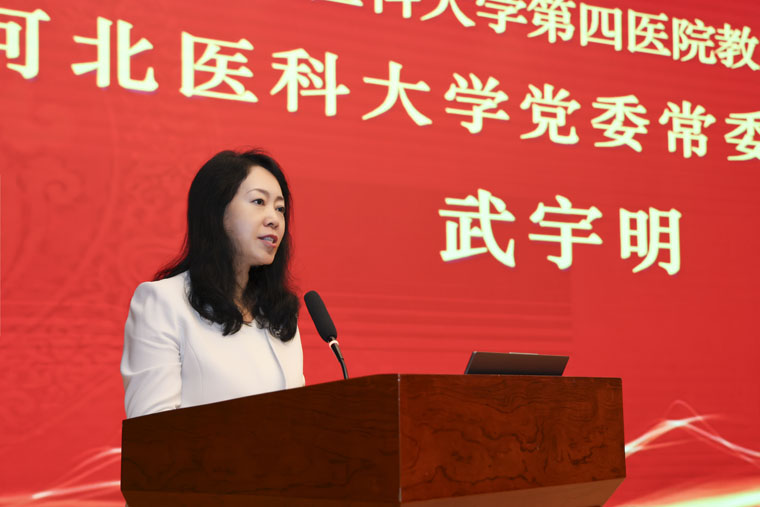 學校黨委副書記武宇明代表學校黨委,向受到表彰的教師先進集體和個人致以熱烈的祝賀。當前是國家“十四五”規劃收官之年和“十五五”規劃謀篇布局之年、是教育強國建設全面布局、高位推進之年,也是學校全面深化綜合改革、全力推進學校高質量發展的關鍵之年,她對全院教師提出三點希望:一做胸懷“國之大者”的強國之師,傳承醫學精神,培育卓越醫學人才,為教育強國、健康中國建設作出醫大貢獻;二做矢志躬耕教壇的強教之師,持續學習、創新教學,培養學生解決實際問題的能力,成為學生求知的引路人;三做篤志傳承薪火的強校之師,不斷提升醫院的核心競爭力和社會影響力,加強師資建設,夯實醫院與學校長遠發展的人才基礎。
