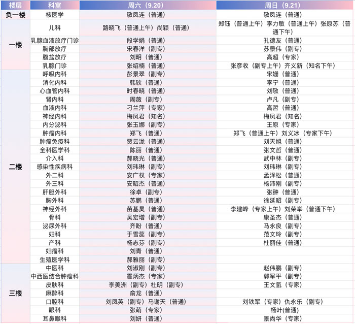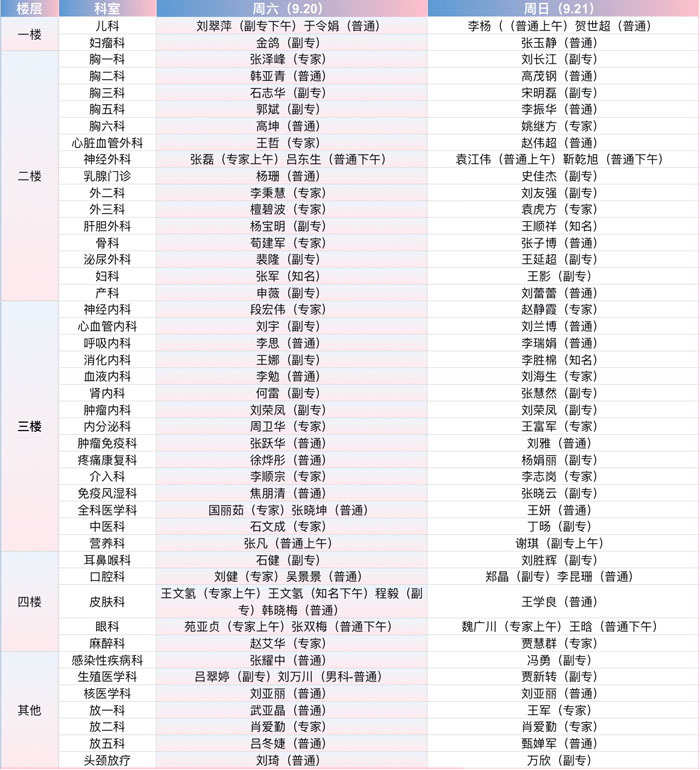注:具體以實際出診為準。