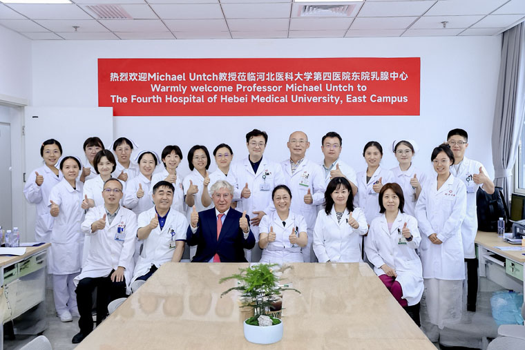 近日,我院乳腺中心舉辦了“國際醫學交流·寰球對話”第四期學術活動,特別邀請多項全球乳腺癌臨床研究的主要研究者(Leading PI)、德國Berlin-Buch Helios(柏林布赫赫利奧斯)醫院婦產科及乳腺癌跨學科研究中心主任Michael Untch教授來訪,通過多環節的學術與實踐交流,為我院乳腺癌診療與國際合作注入新動能。