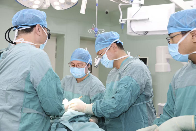 手術過程中,由于患者左側胸壁曾接受放療,胸廓內動靜脈存在畸形且彈性減弱,為血管吻合帶來極大困難。回天立、王新樂副主任醫師憑借精湛技藝,在直徑僅約1毫米的血管上小心精細操作,最終成功完成血管吻合,確保皮瓣在安全期內恢復有效血運。術后,病區護理團隊密切監護,患者順利度過危險期,早期即可下床活動,康復進程平穩,術后一周出院。