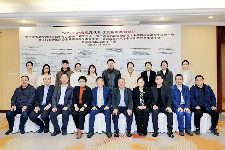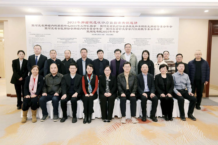 11月16日,由我院腫瘤內科承辦的2025年腫瘤規范化診療暨指南共識巡講、河北省腫瘤內科質控中心2025年工作匯報會、河北省抗癌協會多原發和不明原發腫瘤專委會年會等七項會議活動在石家莊同期舉行。河北省市縣各級腫瘤內科質量管理與控制中心全體委員、省內腫瘤醫學領域相關專業技術人員及管理人員齊聚一堂,共同探討腫瘤診療規范與質控工作方向,會議設置1個主會場和5個分會場,為全省腫瘤診療同仁搭建了高質量交流平臺。河北省腫瘤內科質控中心主任、我院腫瘤內科主任史健教授擔任大會主席。