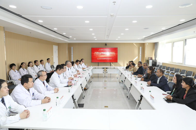 儀式現場,李立平書記、田曉玲副院長,院辦室、人事處等職能部門負責人,血液內科、放療科、腫瘤內科、重癥醫學科、病理科等臨床科室專家,與尼泊爾B.P.柯伊拉臘紀念腫瘤醫院腫瘤內科主任Guru Sharan Sah帶領的9人醫療團隊共同出席,見證這一承載中尼醫療協作成果的重要時刻。儀式由人事處處長韓國軍主持。