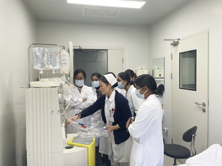 尼泊爾B.P.柯伊拉臘紀念腫瘤醫院腫瘤內科主任Guru Sharan Sah衷心感謝我院的精心籌備,“從定制化課程到生活細節的關懷,處處體現著中尼兄弟般的情誼。”他表示,骨髓移植項目的推進,讓中尼雙方邁入醫療合作的新階段。通過此次培訓,尼方人員掌握了血細胞分離、干細胞采集、自體干細胞移植流程、PICC植入術等技能,回國后將盡快把技術轉化為臨床實踐,填補尼泊爾診療空白,切實提升本國腫瘤診療水平。