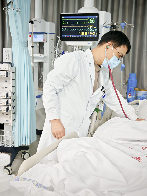 搶救室內,值班醫師王耀賢、護理組長何宗澤早已準備就緒,氣管插管、呼吸機輔助通氣、高級生命支持……搶救措施緊張而有序,約40分鐘后,患者恢復了自主心跳。